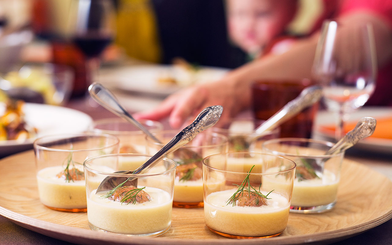 Jos ruokailijoita on enemmän, voi alkupalat tarjota myös seisovasta pöydästä. Monet alkuruoistamme sopivat erinomaisesti valmistettavaksi hyvissä ajoin, jolloin kokillekin jää aikaa nauttia hyvästä ruoasta ja muiden ruokailijoiden seurasta.